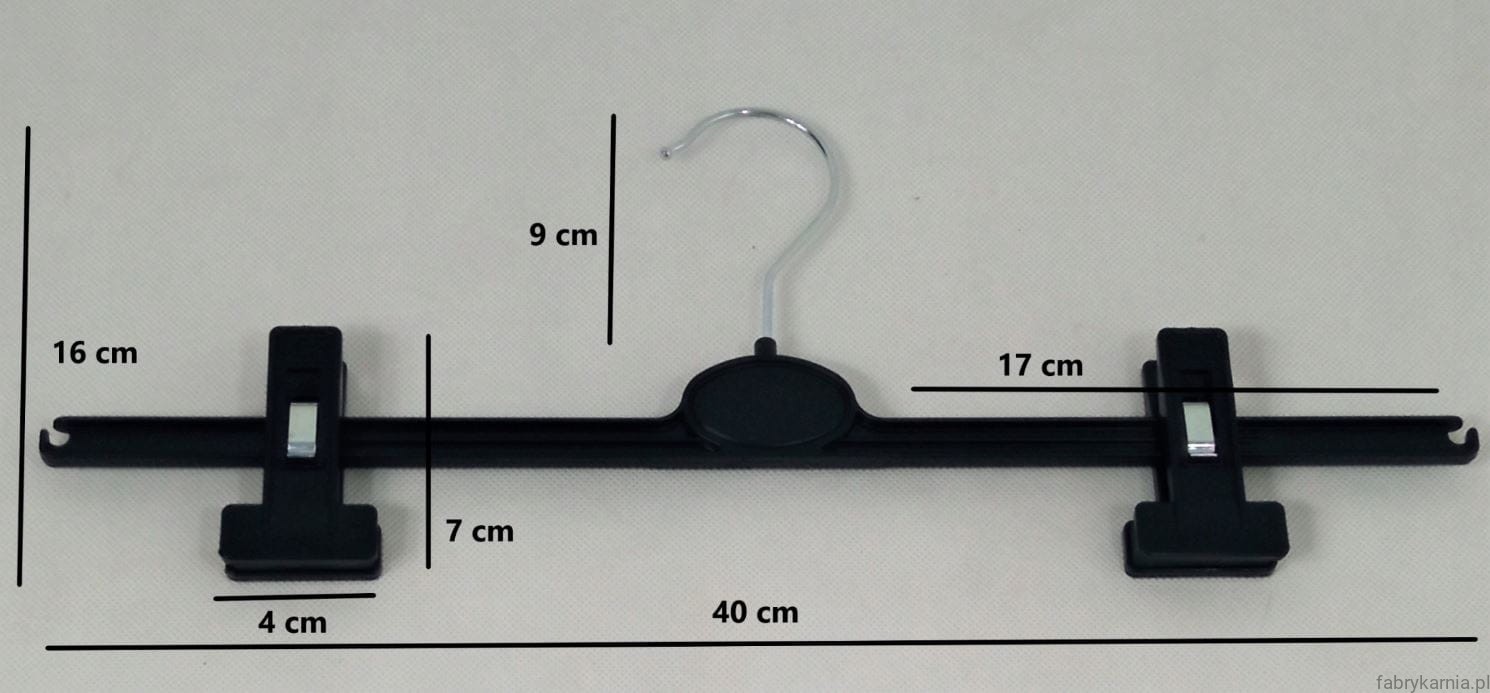 Wieszak klamrowy wraz z wkładkami antypoślizgowymi to idealne rozwiązanie do uporządkowania i ekspozycji spodni, spódnic, bryczesów czy innych produktów odzieżowych, które nie mogą być zawieszone na tradycyjnych wieszakach. Wykonane w całości w Polsce, z mocnego tworzywa.